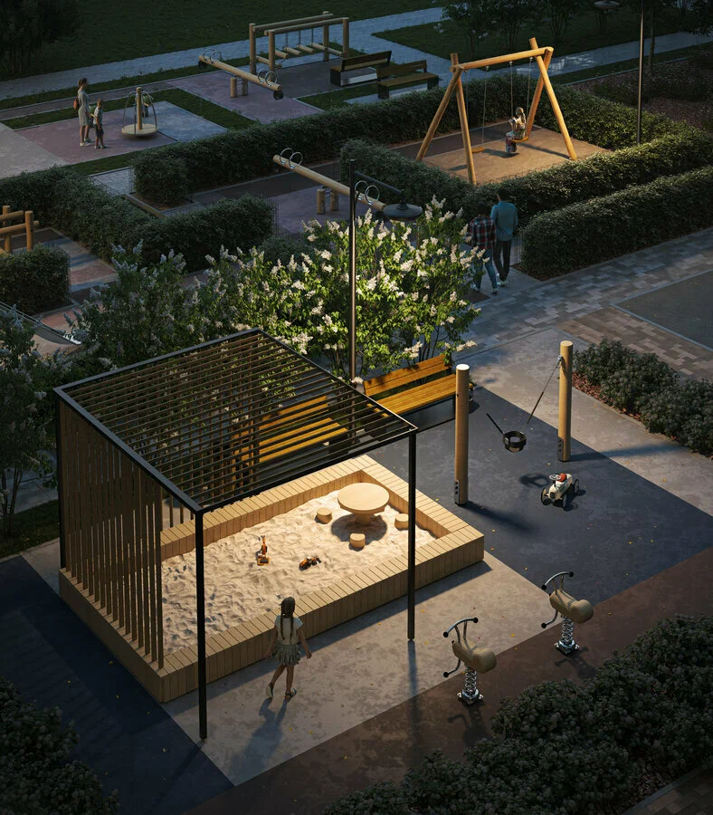 Жилой комплекс состоящий из трёх домов переменной этажности и подземного паркинга, расположен в Орджоникидзевском районе города Екатеринбурга в квадрате улиц Бакинских комиссаров- Кировоградской — Калинина — Соснового переулка. Архитектура комплекса в стиле постконструктивизм вписывается в архитектуру района Уралмаш. У каждого дома свой двор с индивидуальным ландшафтным дизайном и цветовой гаммой за счет высаженных растений. Жители комплекса смогут спокойно перемещаться по территории всех дворов, но в тоже время по периметру комплекса будут ограждения от посторонних и автомобилей. В каждую секцию предусмотрены два входа — с улицы и со двора. В холлах уютная мягкая мебель, есть колясочные и мойки для лап животных. Также посетителей встречает администратор за стойкой.